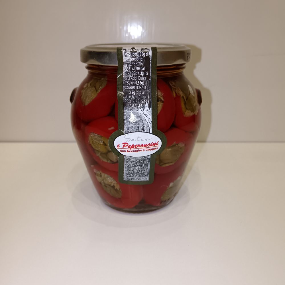 Szardellával és kapribogyóval töltött csípős peperoni paprika